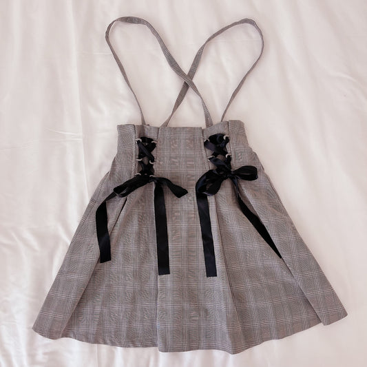 Sold outmars gray check suspenders skirt