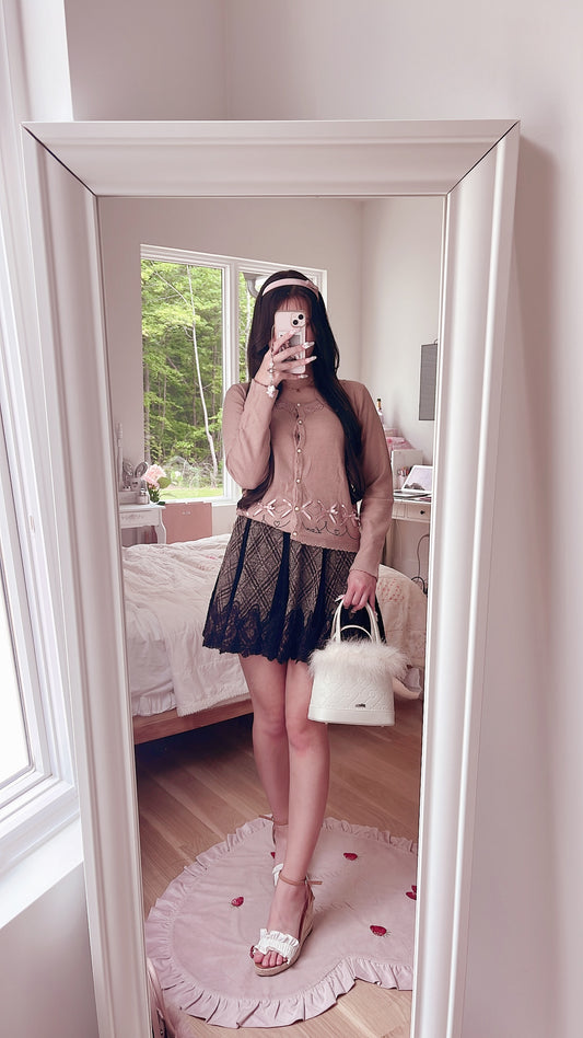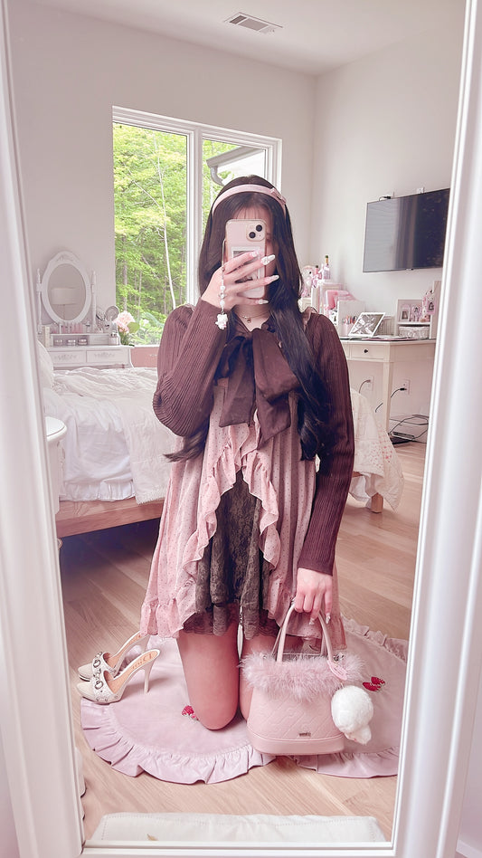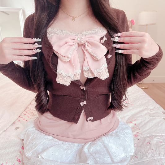 Sold outbrown and pink ribbon cardigan
