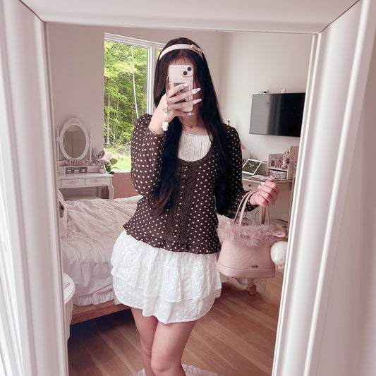 Sold outbrown polka milkmaid top