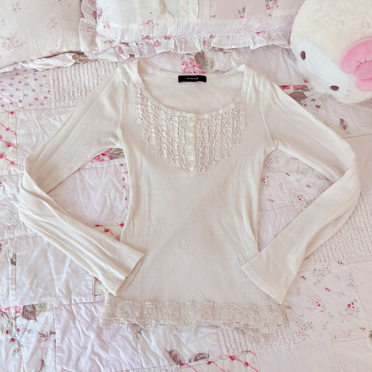 Sold outcream ribbon lace up knit top