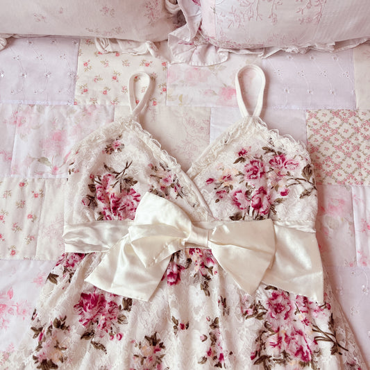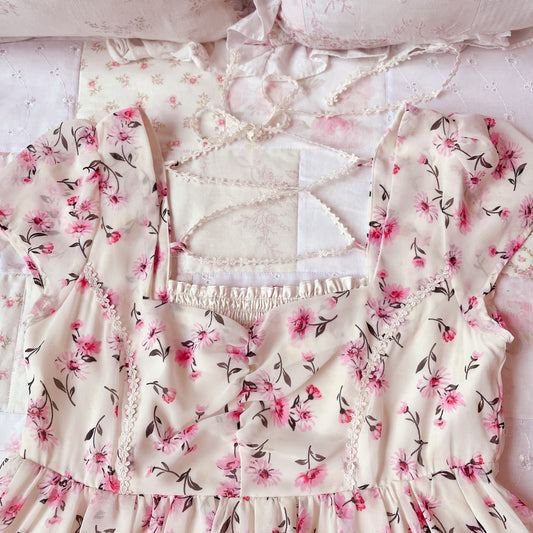 Sold outcream and pink floral chiffon dress