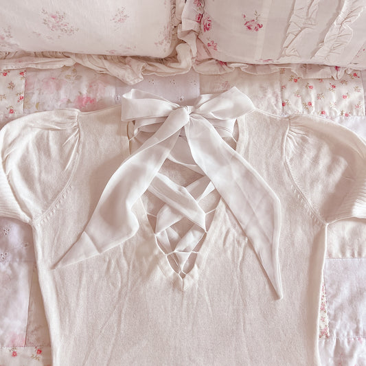 white lace-up back dress