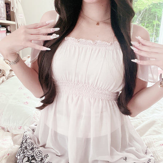 Sold outlavender off-shoulder sheer blouse