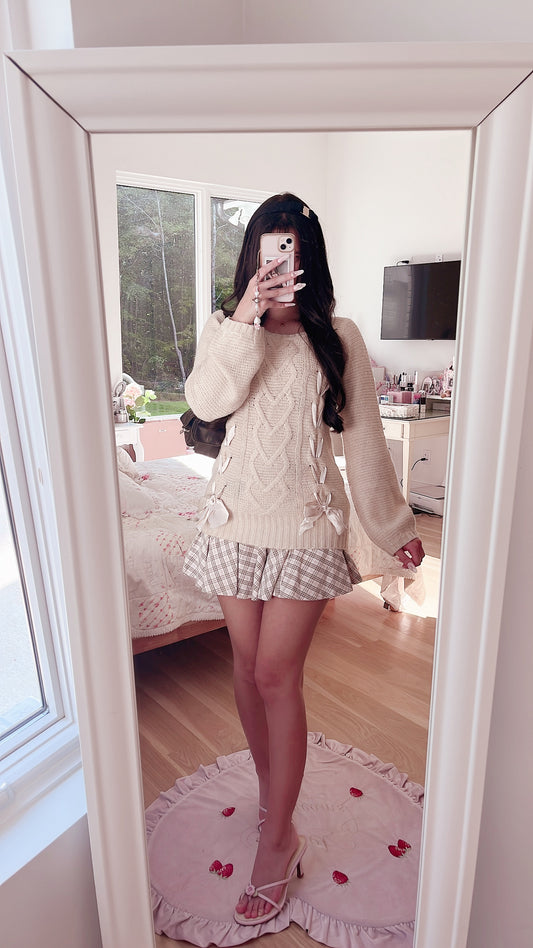 Sold outbeige ribbon lace up sweater