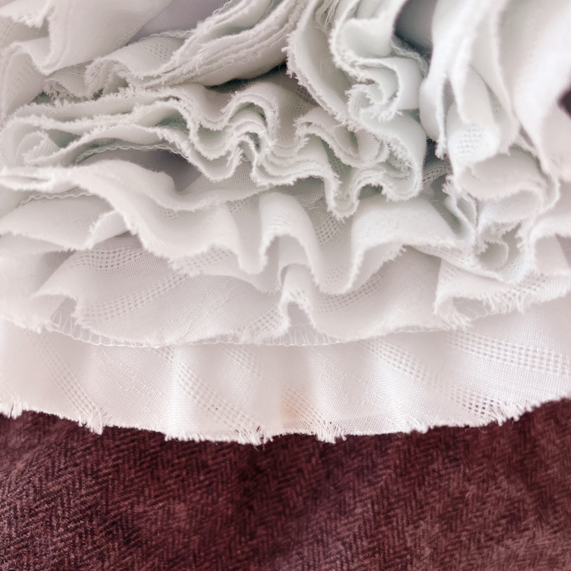 ♡ the sweetest flared and ruffle hem skirt <3 warm-toned (minty) baby blue color with green and cream floral embroidery. pairs amazingly with cream colored tops and accessories. full elastic waistband for a super comfy fit. the sweetest silhouette for any dollcore outfit.